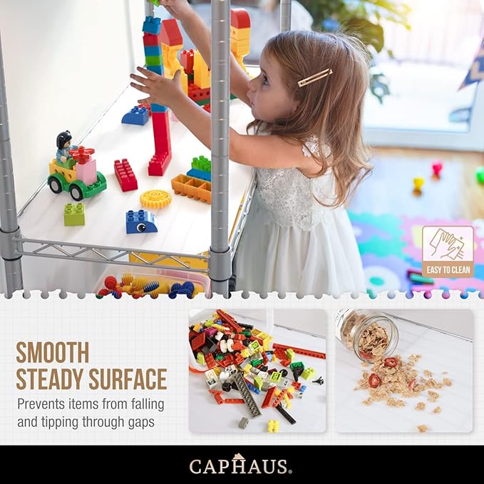 - 🔨 Multifunctional Shelves Fit Everywhere You Want – This multifunctional metal storage shelf can fit any working or person place. No matter at living room, kitchen, office, basement, storage room, or garage, it would be your ideal assistant of organizing. If you have any issue with the item you purchased, please feel free to contact our customer service team, they will definitely assist you with it!