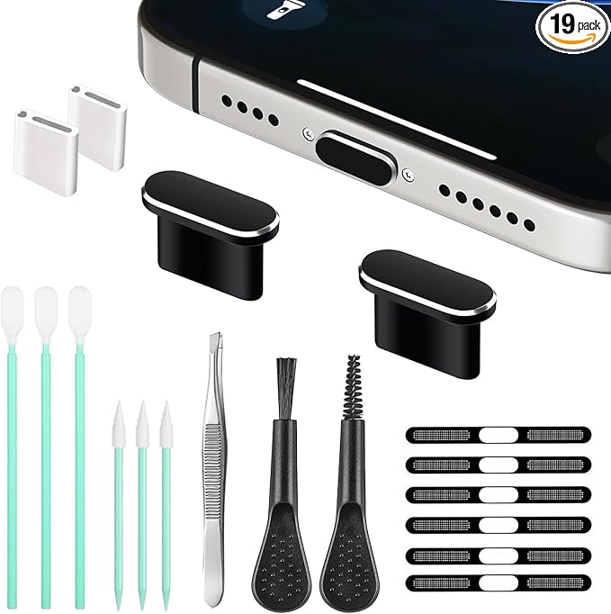 - 【Applicable model】The dust plug and dust screen of this set are mainly equipped with the charging port and speaker hole of the iPhone15 and 16 series mobile phones, and the cleaning rod and cleaning brush can also be used to clean the small electronic products at home, such for AirPods charging port, of course, the laptop power hole, the headphone hole can be used, I hope these small things can bring you convenience