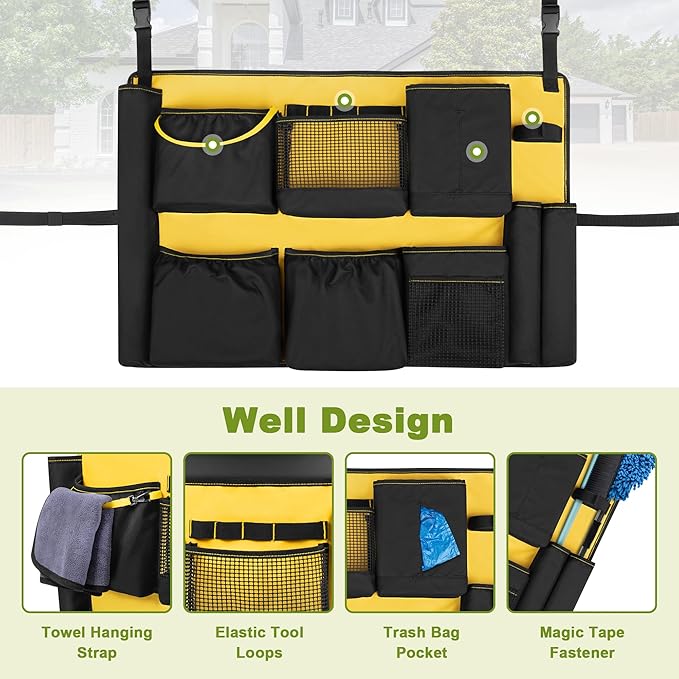 - Multi-Functional Pockets: This garbage can caddy is designed with 10 pockets & multiple slots, dry and wet separation, allowing to store spray cleaners, brushes, wiping towels, rubbish bags, small brooms and other daily cleaning tools within easy reach