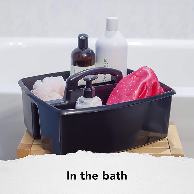 Storex 2-Compartment Large Cleaning Caddy – Multipurpose Supply Organizer with Handle - Black (00973A06C),(Pack of 6)