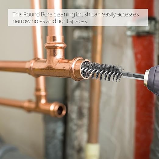 - [Widely Application] Equipped with extension rods and an extension handle, the round wire cleaning brush easily accesses narrow holes and tight spaces. It is widely used for dust removal, derusting, corrosion removal, and polishing in applications such as automobiles, pipelines, ports, bearings, and other confined areas.