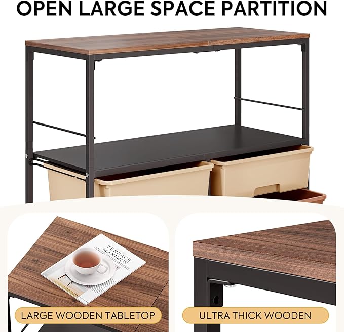 - Generous Capacity For Storage&Display: Designed with space efficiency in mind, this crafts organizer features spacious drawers (10.94"D x 12.68"W x 4.53"H) and an open storage shelf, complemented by a sturdy wooden top that is perfect for displays,plants,or light tasks.